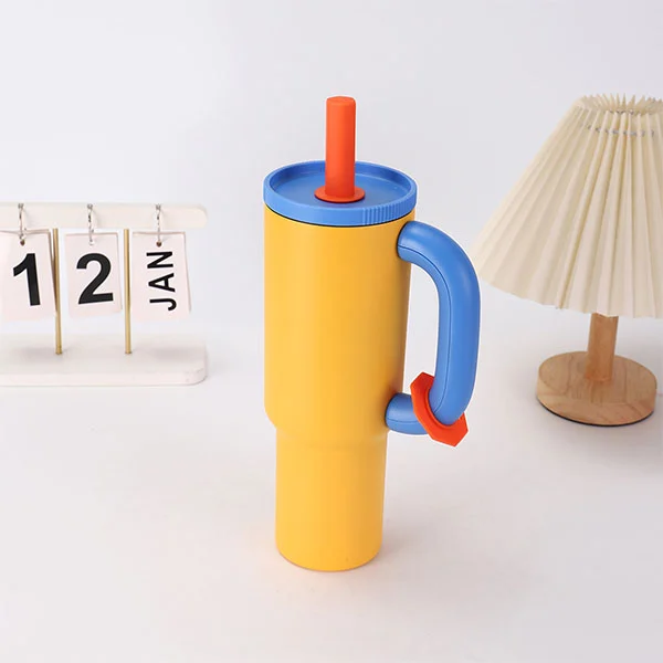 Derudover er det dobbelte vakuumstrå Thermos Portable Outdoor Cup til camping designet med et stort håndtag, hvilket er let at forstå og gør operationen mere praktisk. Det har fremragende varmebeskyttelse og kølingspræstation. Det brede kantdesign gør det meget let at tilføje isterninger.