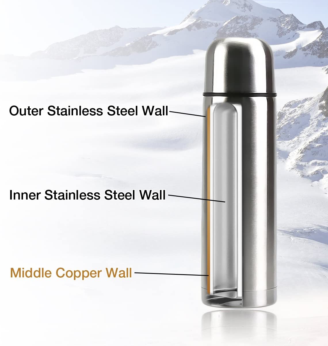 | Dobbeltvæg og vakuumisolering | Glat mund |