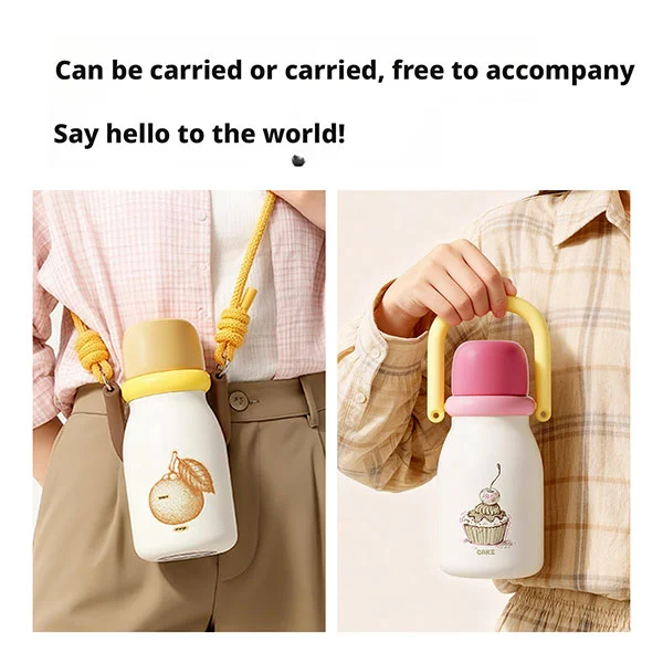 Kudike fashion termokandekoppen er perfekt til babyer (over 18 måneder), der går fra en flaske til en vandkop. Det er meget vigtigt for børn at holde det frisk, rent og sterilt, så denne vandkop bruger Thermos technology ™ Vakuumisoleringsteknologi kan holde babydrikke varme i op til 12 timer. Denne vakuumisolerede halmkop i rustfrit stål har et ergonomisk flaskehusdesign, der gør det nemt for babyer at tage fat med deres små hænder. Denne stråvandflaske i rustfrit stål er naturligvis fri for bisphenol A (BPA) og kan holde drikkevarer kølige, hvilket er med til at hæmme væksten af skadelige bakterier.