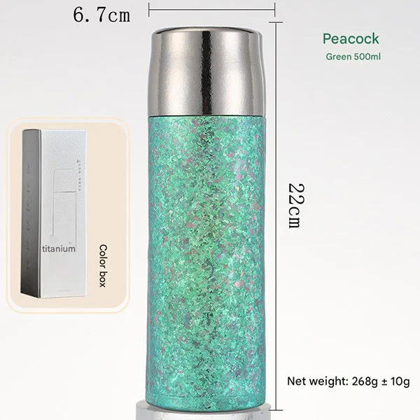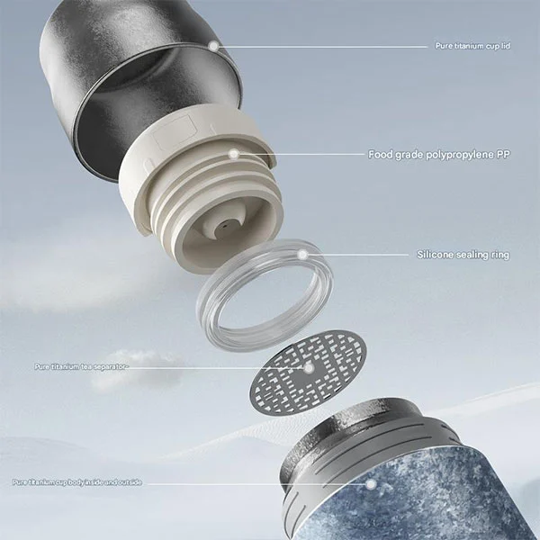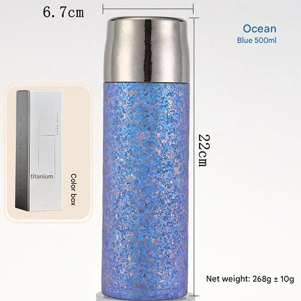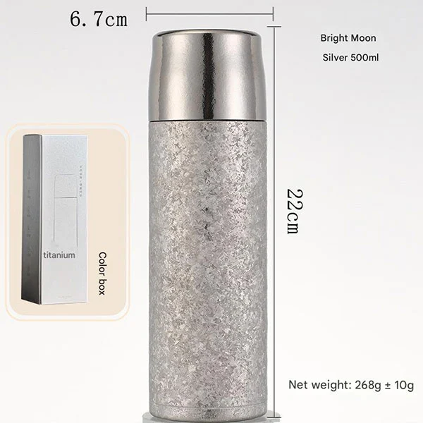 Klassisk tebrygger, titanium flaske har en lækagesikker kop lavet af rent titanium både indvendigt og udvendigt, udstyret med lækagesikre låg, rene titanium kophætter og dobbeltlags anti-skoldning!