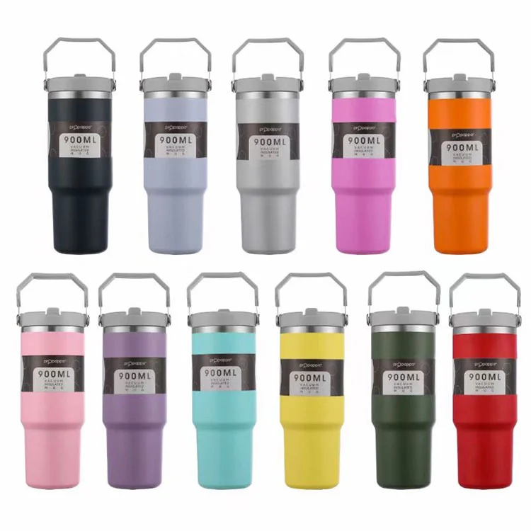 Tumbleren med håndtagens kapacitet er 900 ml og 600 ml, den er vakuumisoleret, når du lægger varmt eller koldt vand, tager du det i din hånd, det føles ikke varmt.