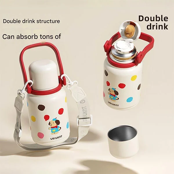 Isoleret vakuumkolbe kan bruges som en must-have-vandflaske for børn at gå i skole eller rejse, hvilket er meget velegnet til børn, fordi deres hænder er små, og stropperne kan frigøre deres hænder
